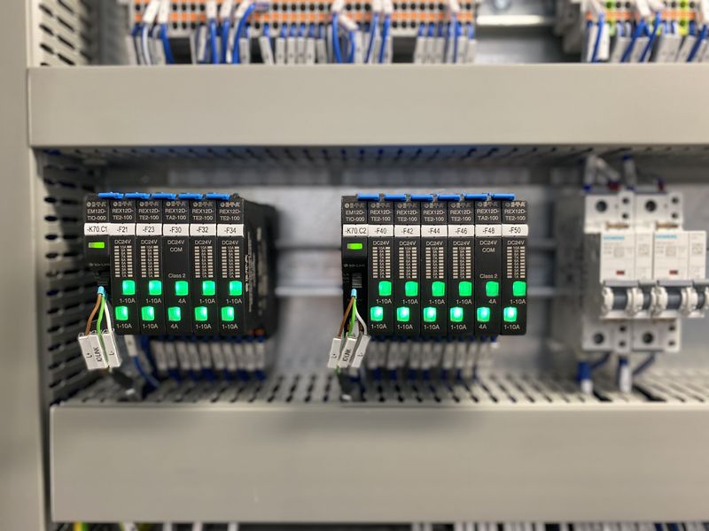 Kein Wunder also, dass die Konstrukteure von SW bei der Auswahl der Schaltschrankkomponenten großen Wert auf eine kompakte Bauform legen. Auch bei der Wahl der DC 24 V Absicherungs- und Stromverteilungslösung spielte dieser Punkt eine entscheidende Rolle. Die eingesetzten E-T-A Sicherungsautomaten vom Typ REX12D überzeugten dabei durch ihren modularen Aufbau und ihr kompaktes Design.